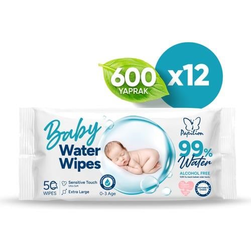 Papilion Baby Water Wipes %99 Saf Su İçeren Bebek Islak Havlu 12x50 (600 yaprak)